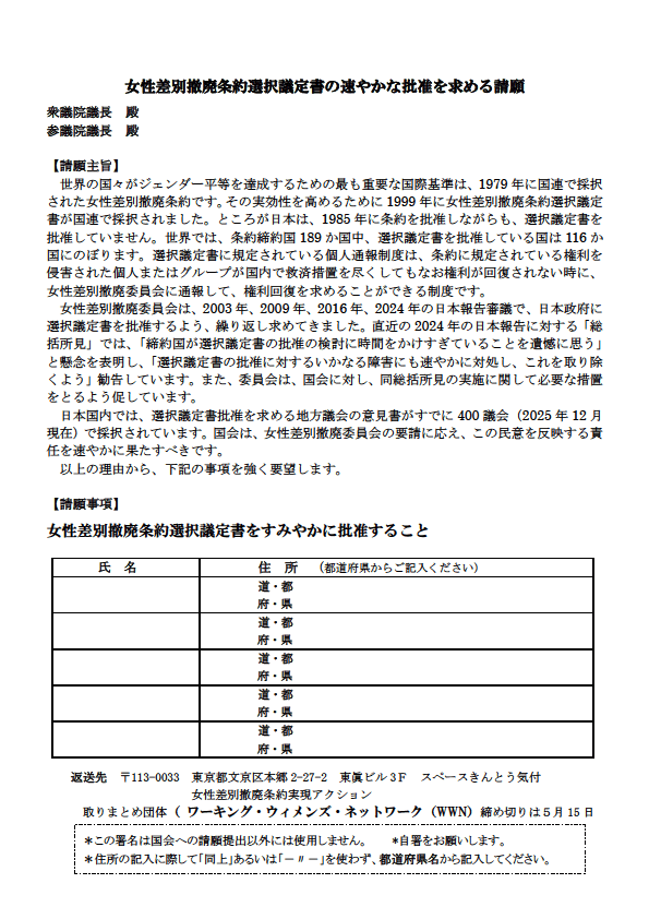 2026 選択議定書批准請願署名